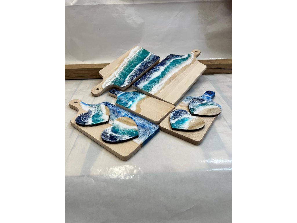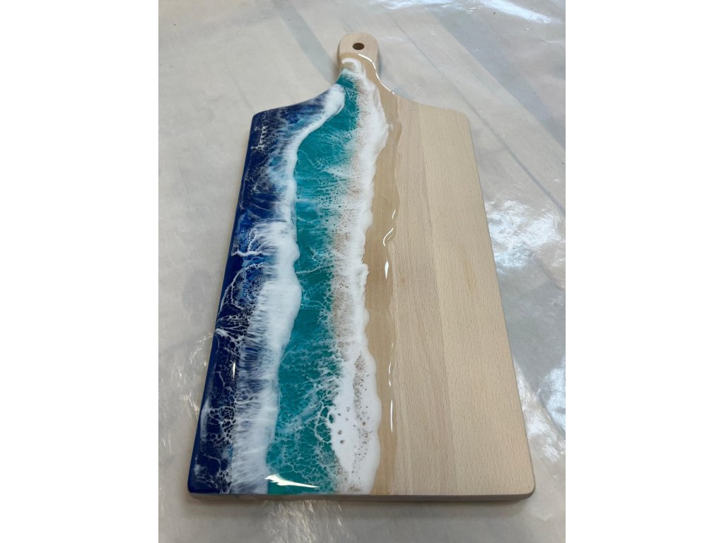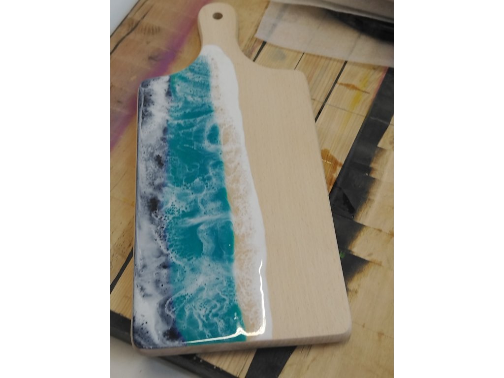 Vyrobeno z epoxidové pryskyřice a bukového prkénka.