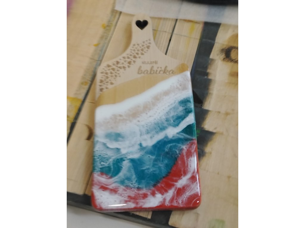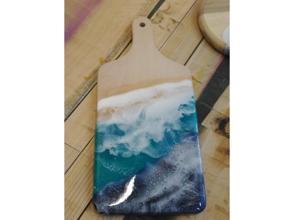 Vyrobeno z epoxidové pryskyřice a bukového prkénka.