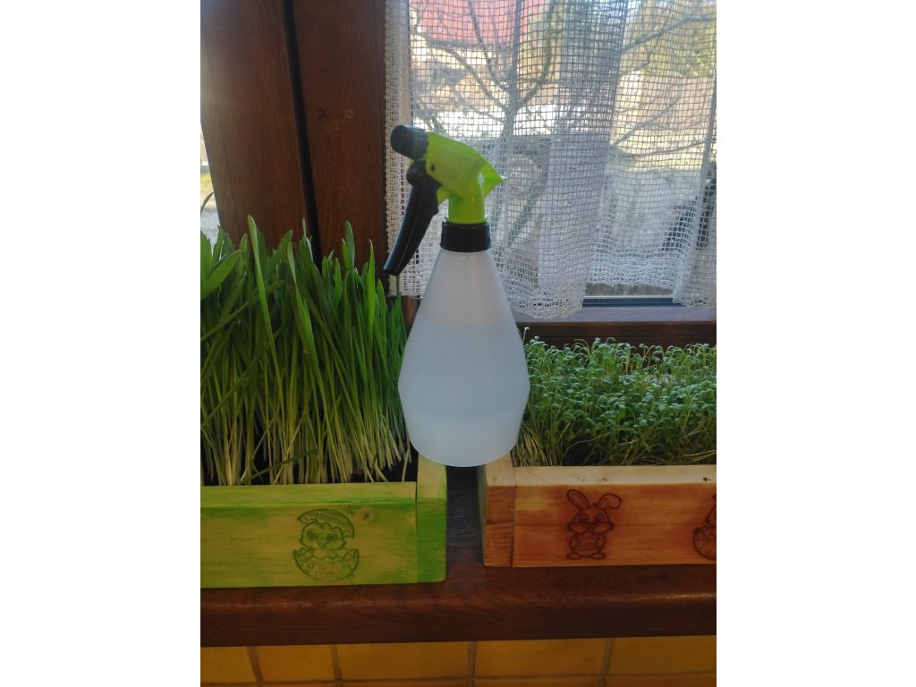 Nezbytný pomocník pro vaše jarní pěstování! Tento praktický rozprašovač zajistí jemné a rovnoměrné rosení, které je klíčové pro správné vyklíčení řeřichy i ječmene. Dopřejte svým bylinkám vláhu, aniž byste vyplavili semínka ze substrátu.