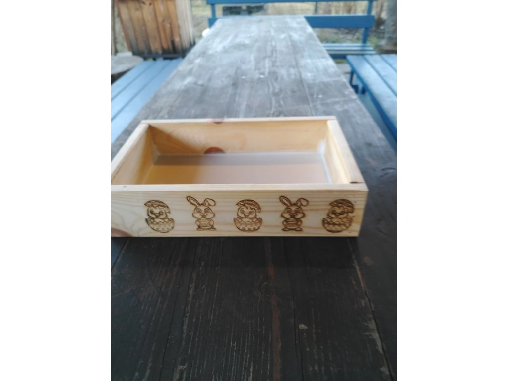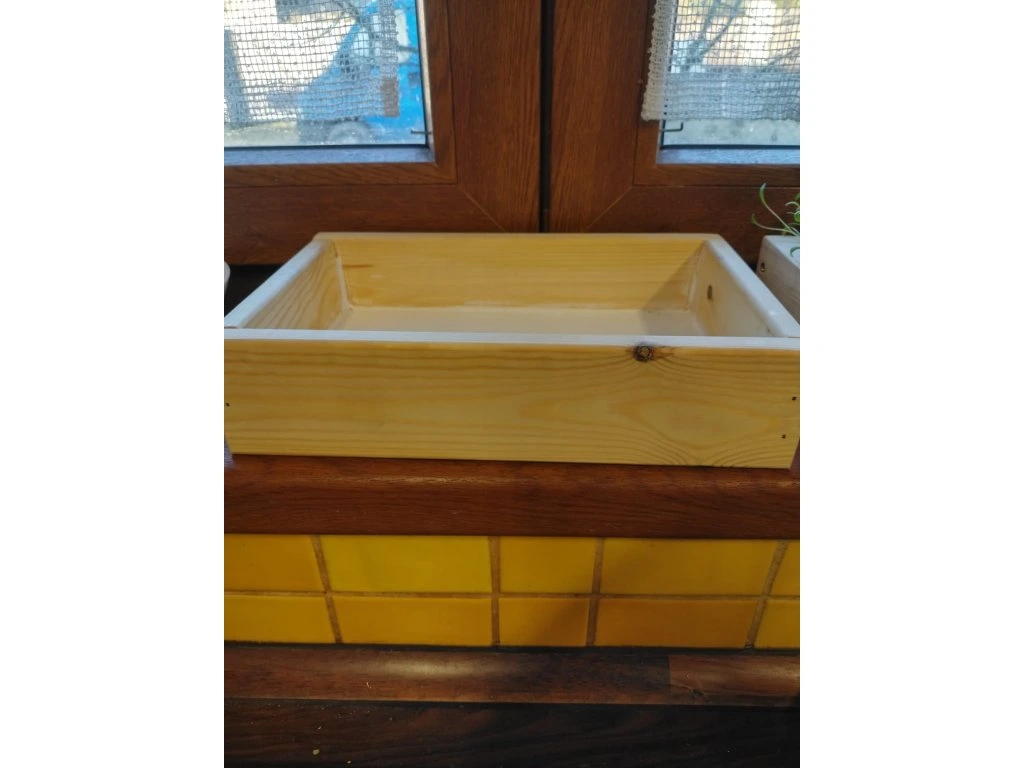 Ručně vyrobený truhlík: Rozměr 25 x 18 x 5 cm. Ideální rozměr pro vnitřní okení parapet.